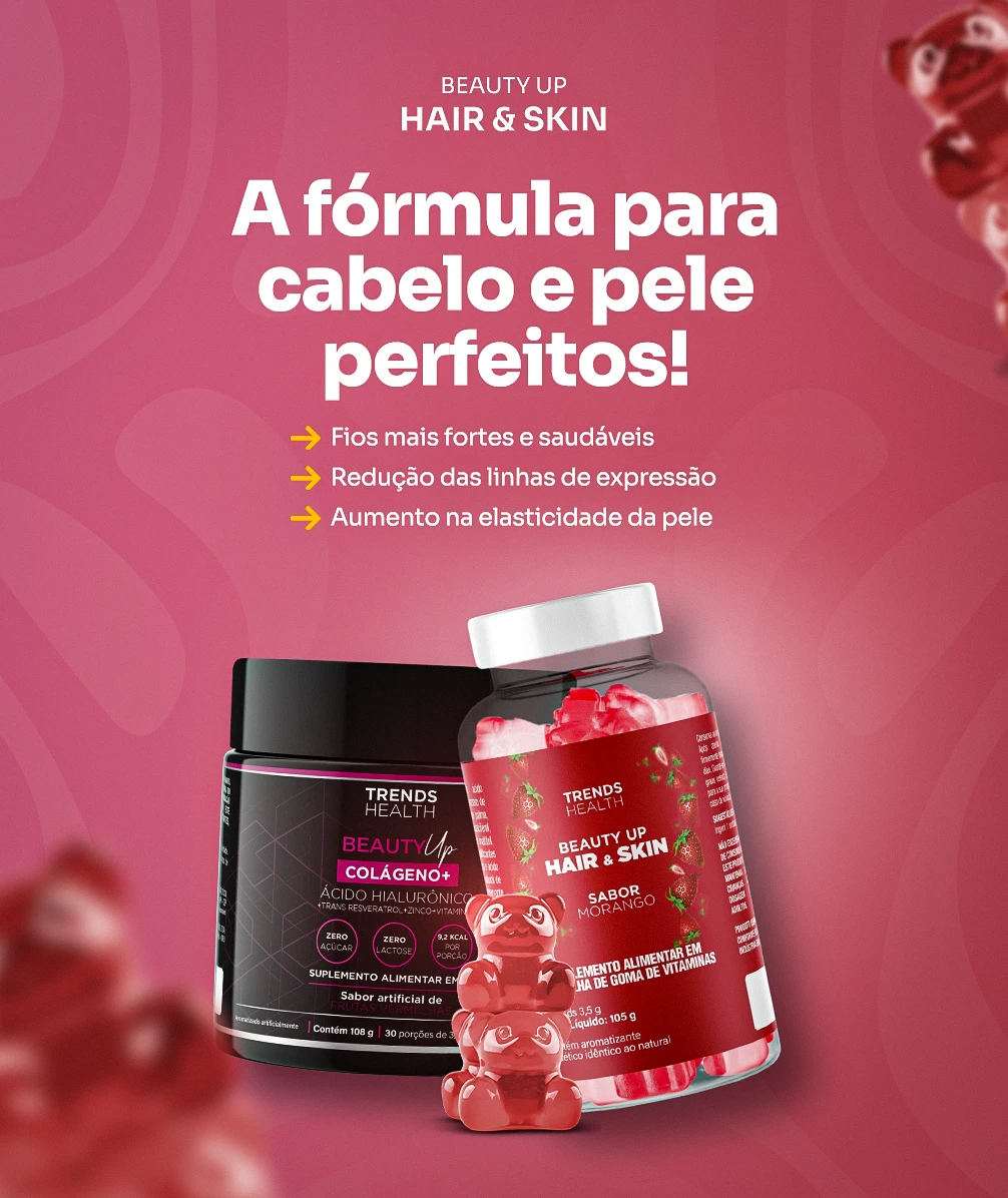 O colágeno Trendshealth contém em sua composição um tipo específico de colágeno, o colágeno verisol® que atua principalmente na pele, unha, cabelos, rugas e flacidez.