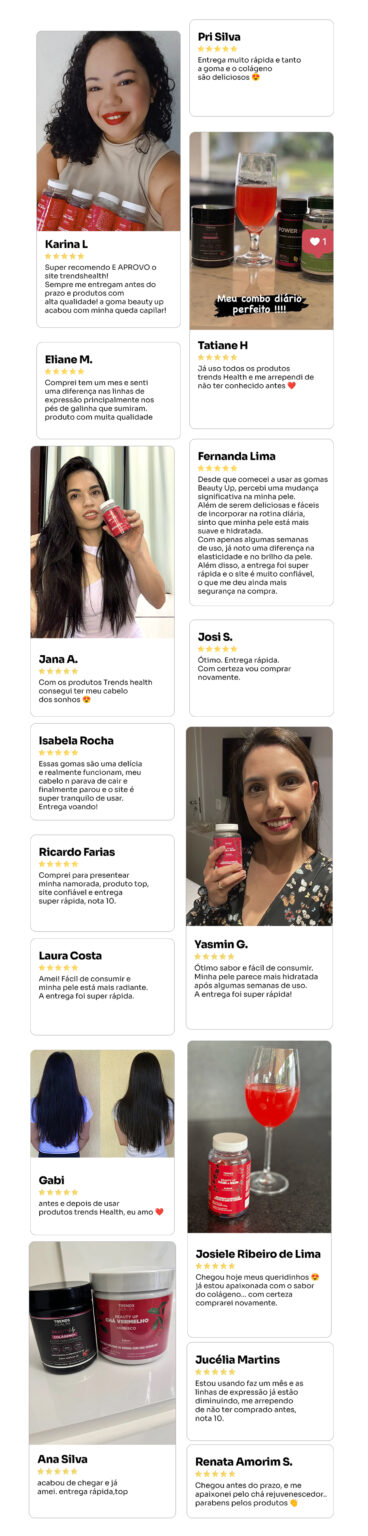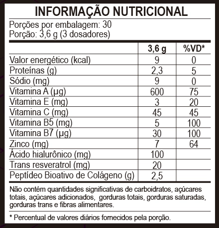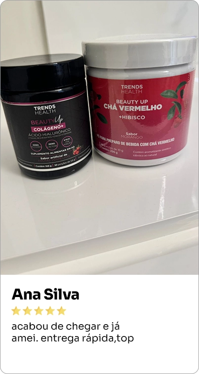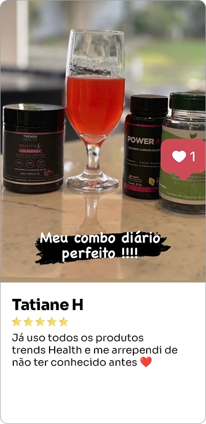 O colágeno Trendshealth contém em sua composição um tipo específico de colágeno, o colágeno verisol® que atua principalmente na pele, unha, cabelos, rugas e flacidez.